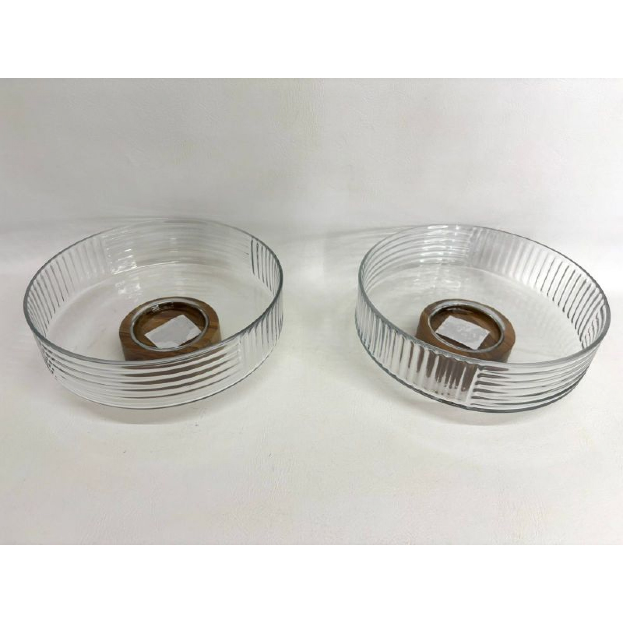 BOWL VIDRIO REDONDO BASE MADERA28X12cm 6413
