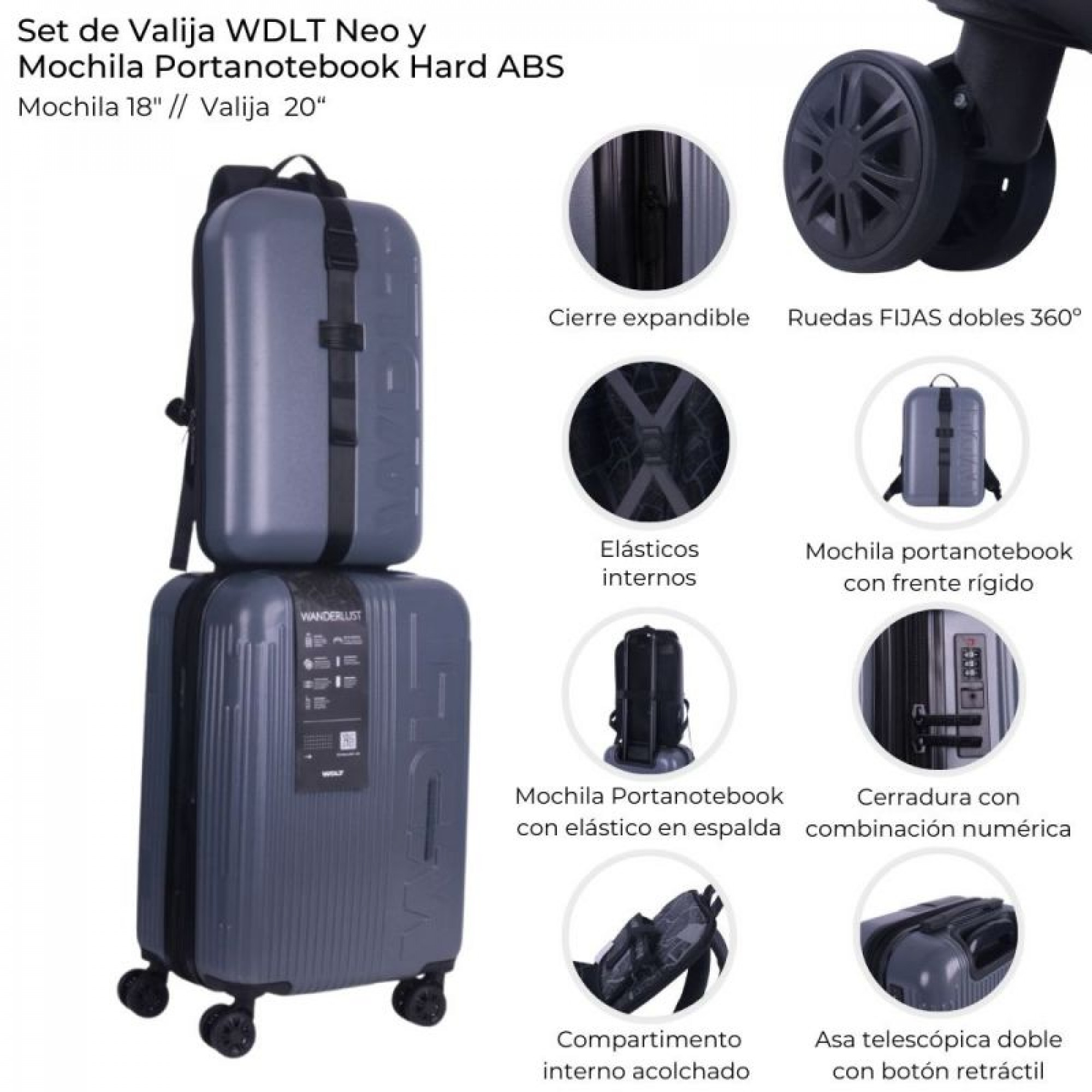 VALIJA NEO + MOCHILA PORTA NOTEBOOK HARD ABS GRIS 20 41096 WDLT